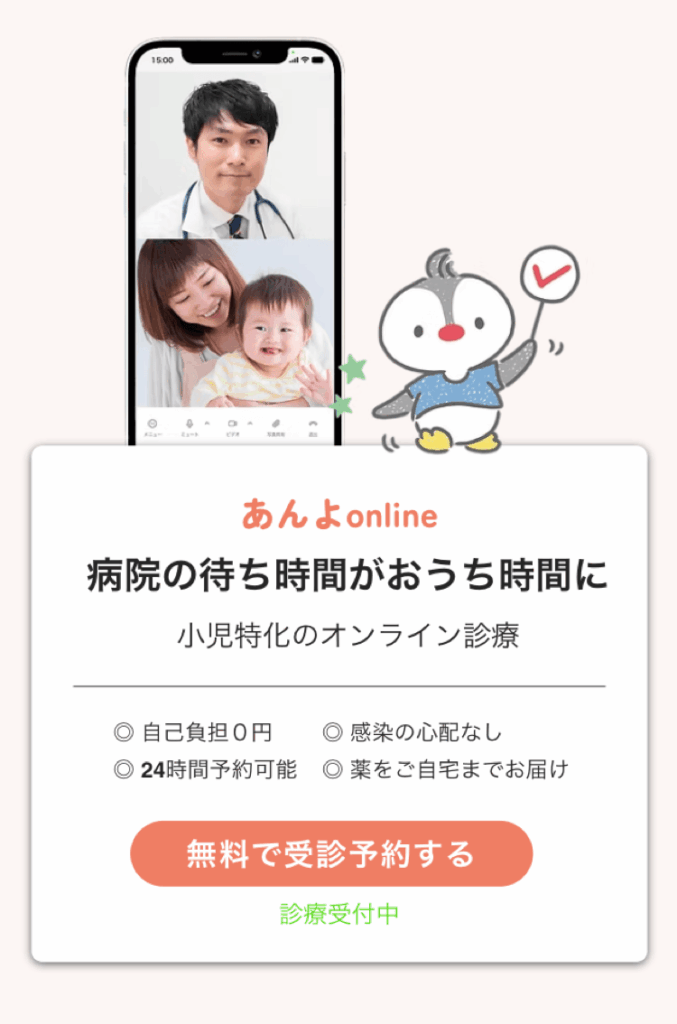 外出が大変な時期ですので、判断に迷う時はオンライン診療「あんよ」の活用も検討してみてください。